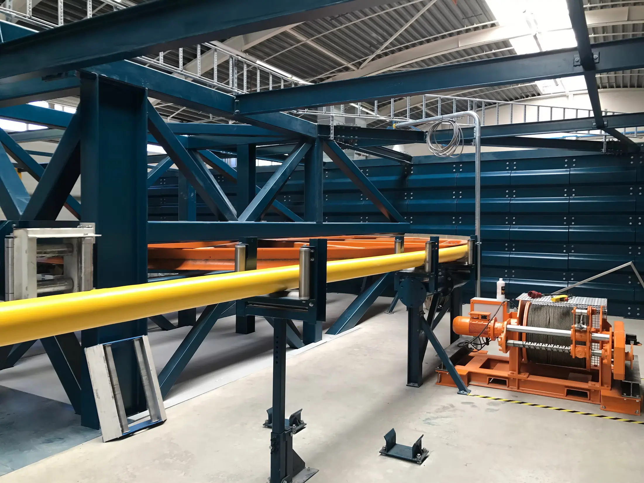 STM Group provided the steel construction and engineering of this unique structure. By utilizing CPI's specialized Corrugated Walls product, the design was ensured that it could withstand the intense winding forces generated during cable handling.
